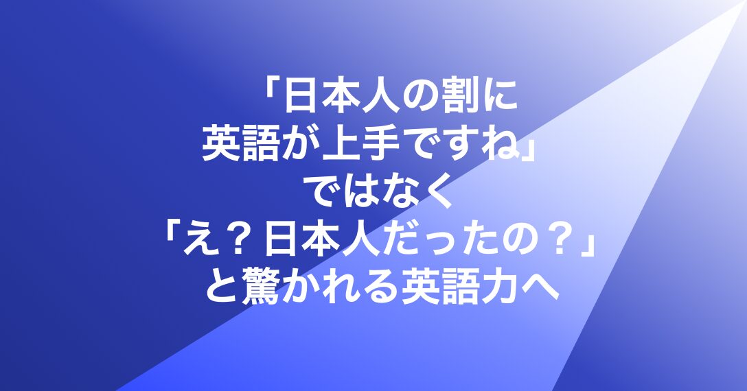 「日本人の割に英語が上手ですね」ではなく「え?日本人だったの?」と驚かれる英語力へ